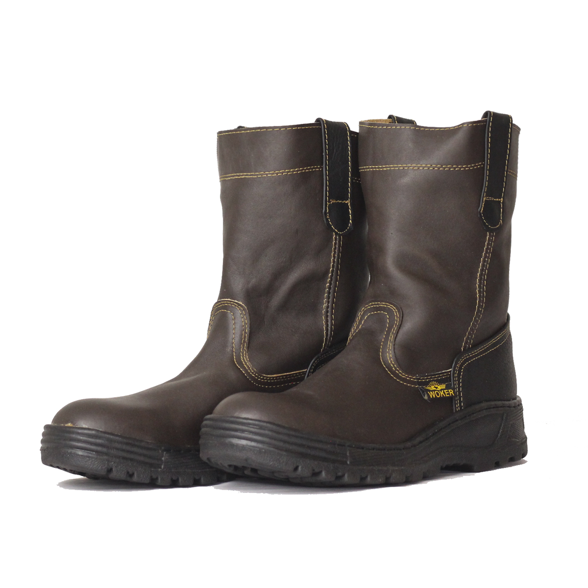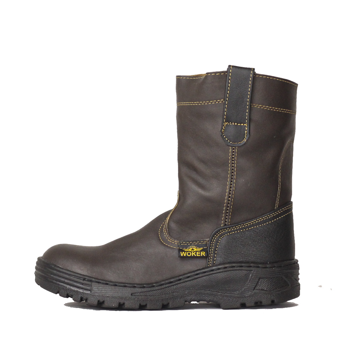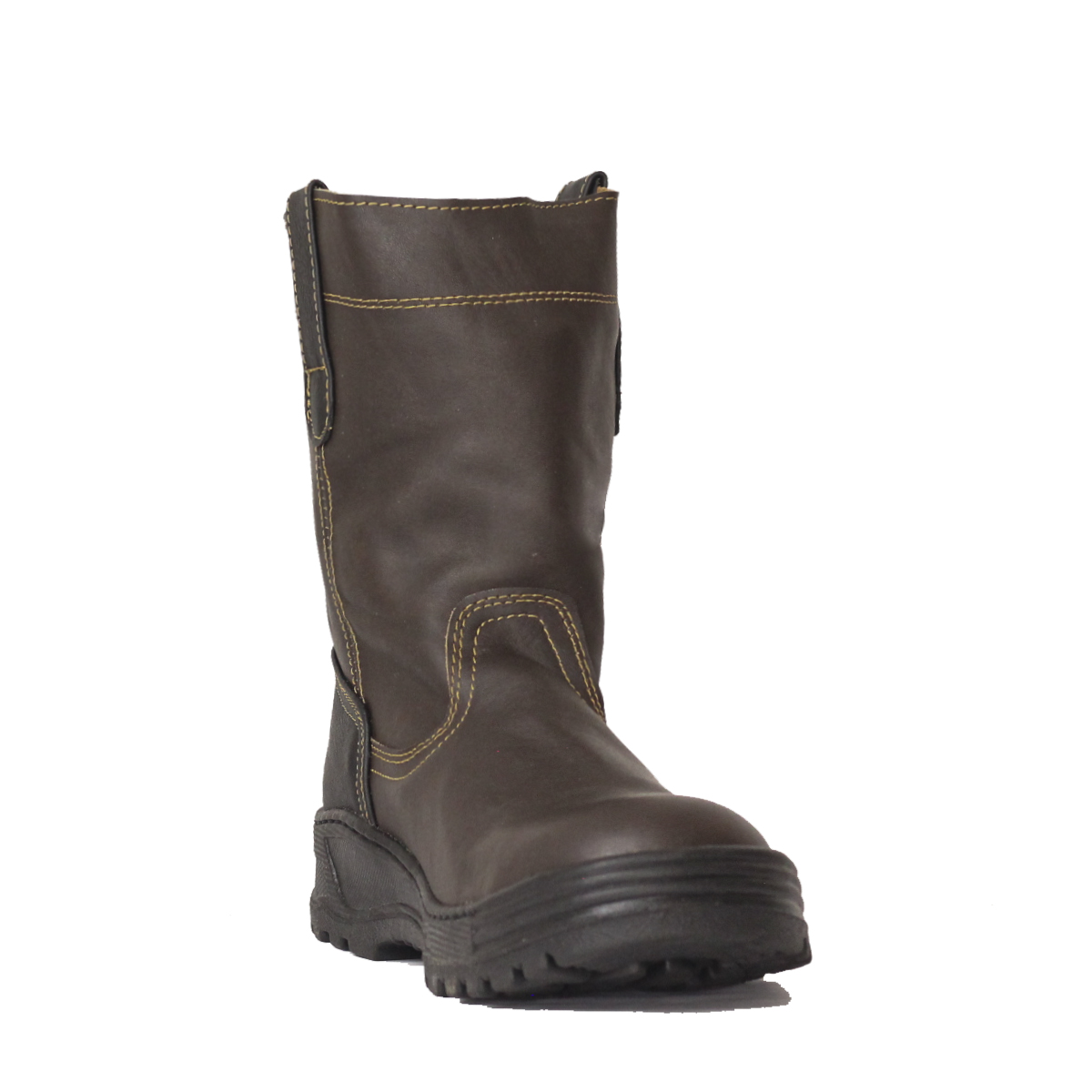 Modelo Camboya – Con casquillo de poliamida  (Dieléctrico) calzado de seguridad con altura aproximada de 26cm desde el suelo hasta la parte más alta del tubo. Está confeccionado con cuero vacuno en acabado GRASSO y cuenta con una suela de hule natural de una sola pieza. La bota está pegada y costurada para ofrecer una mayor resistencia.