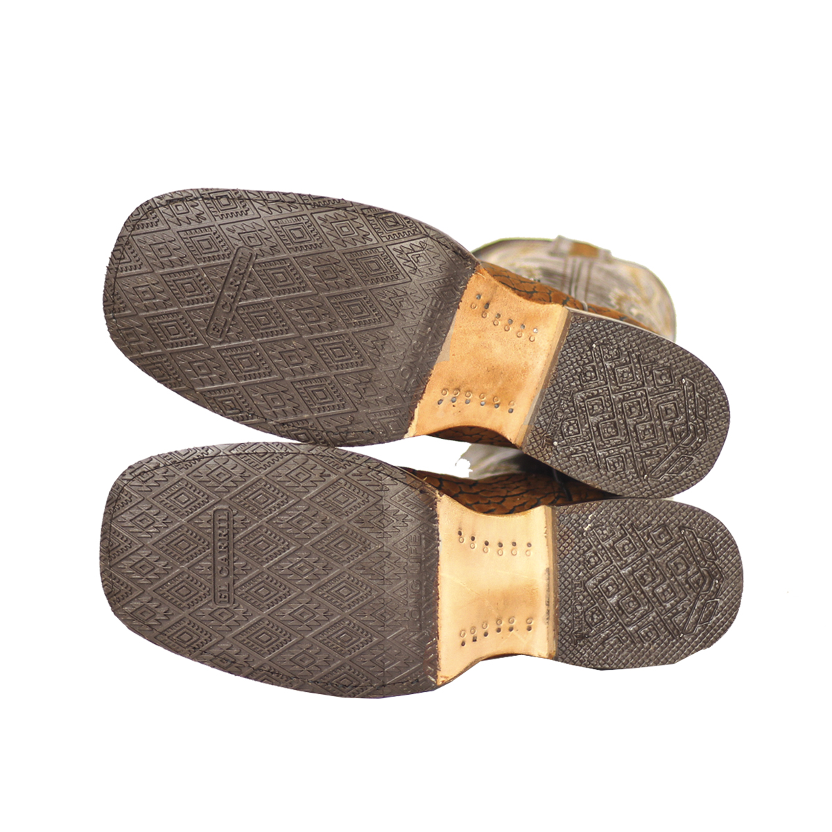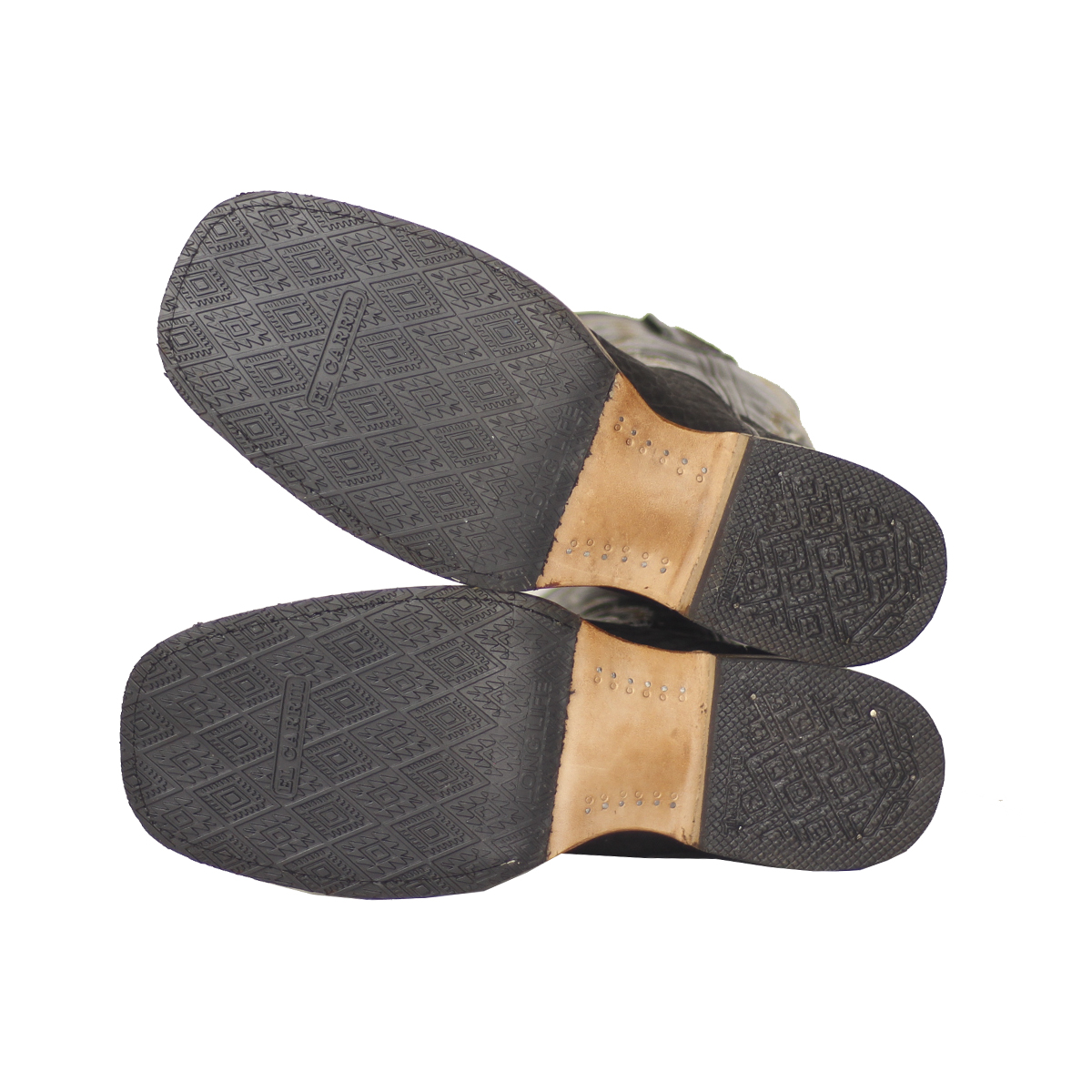Modelo Cuello de Toro CRR – Confeccionado íntegramente con piel de vacuno de alta calidad, le confiere un aspecto distintivo y elegante. La suela está elaborada en cuero genuino, al igual que el tacón, asegurando una durabilidad y resistencia excepcionales. La bota presenta una altura estándar, complementada con una chinela y un tubo bordado que añade un toque de elegancia y estilo. Este diseño no solo garantiza una estética atractiva, sino también un confort superior y una larga vida útil, ideal para quienes buscan combinar funcionalidad con un look clásico y sofisticado.