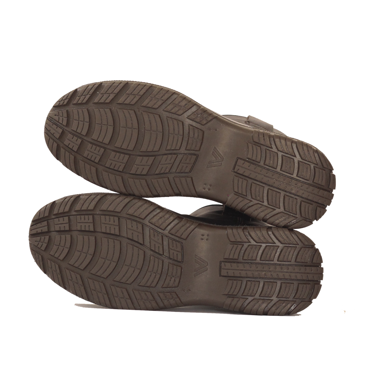 Modelo Hunter – Fabricada con Tecnología Alemana de Inyección directa al corte, doble densidad, entre suela en PU y patín de formula tetrapolímeros Huella MXV-4 con estriado antiderrapante de formas mixtas, canales curveados de profundidad media, diseño direccional, tacón desvanecido y spring optimo. Ligera, favorece el agarre al piso y la salida de líquidos. Brinda amortiguación, comodidad y estabilidad al caminar. Resistencia a agentes corrosivos, non marking y protege al usuario contra riesgos de choque eléctrico