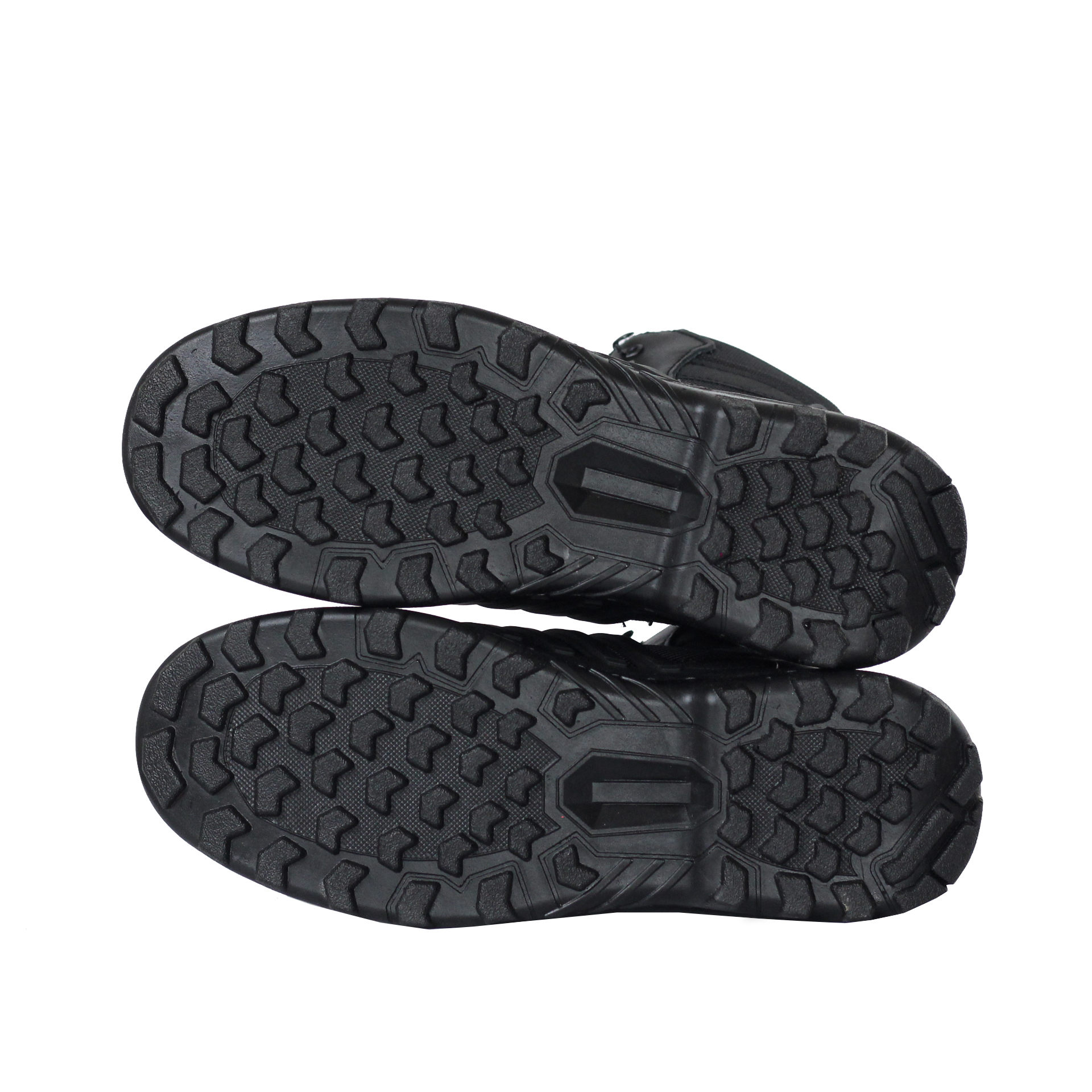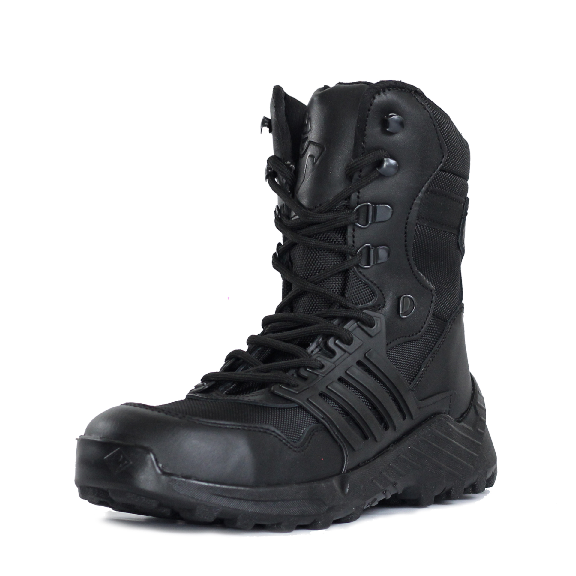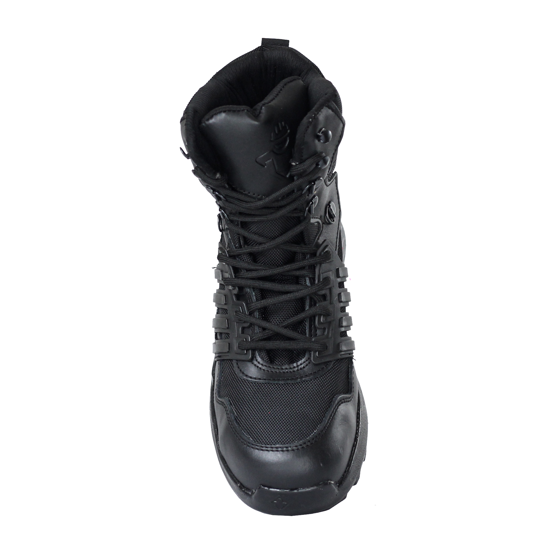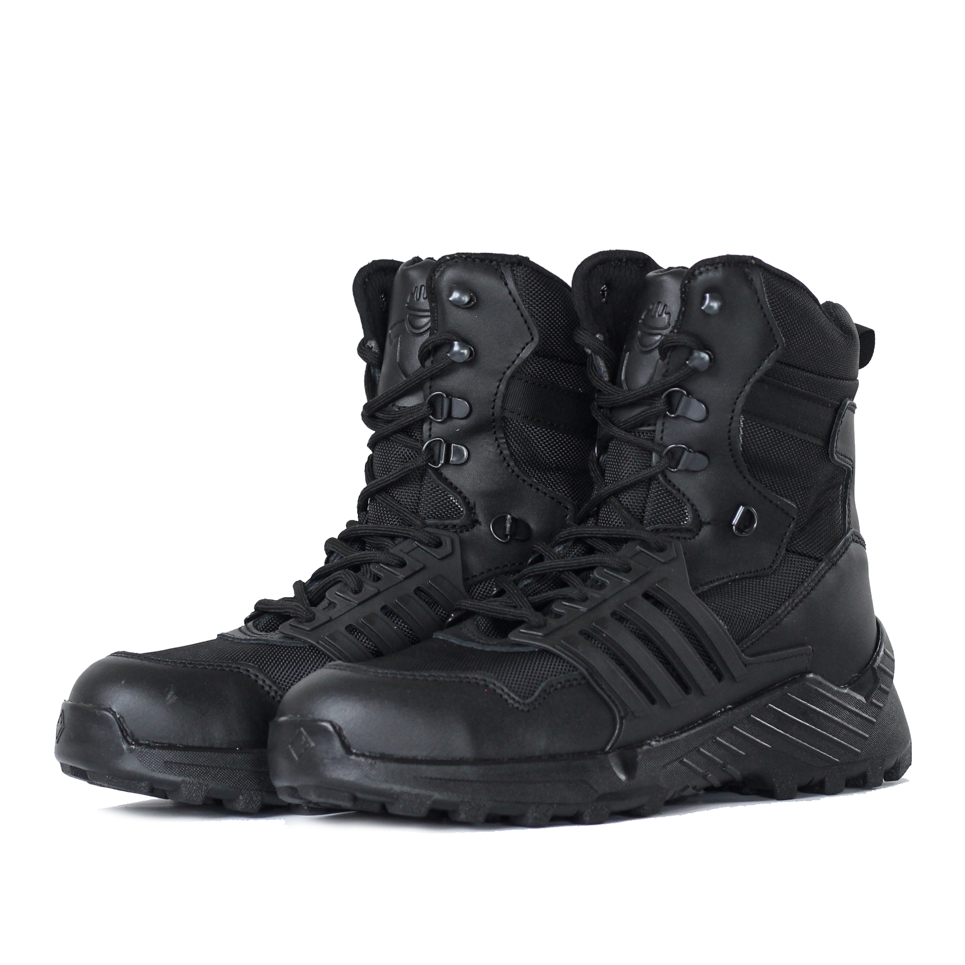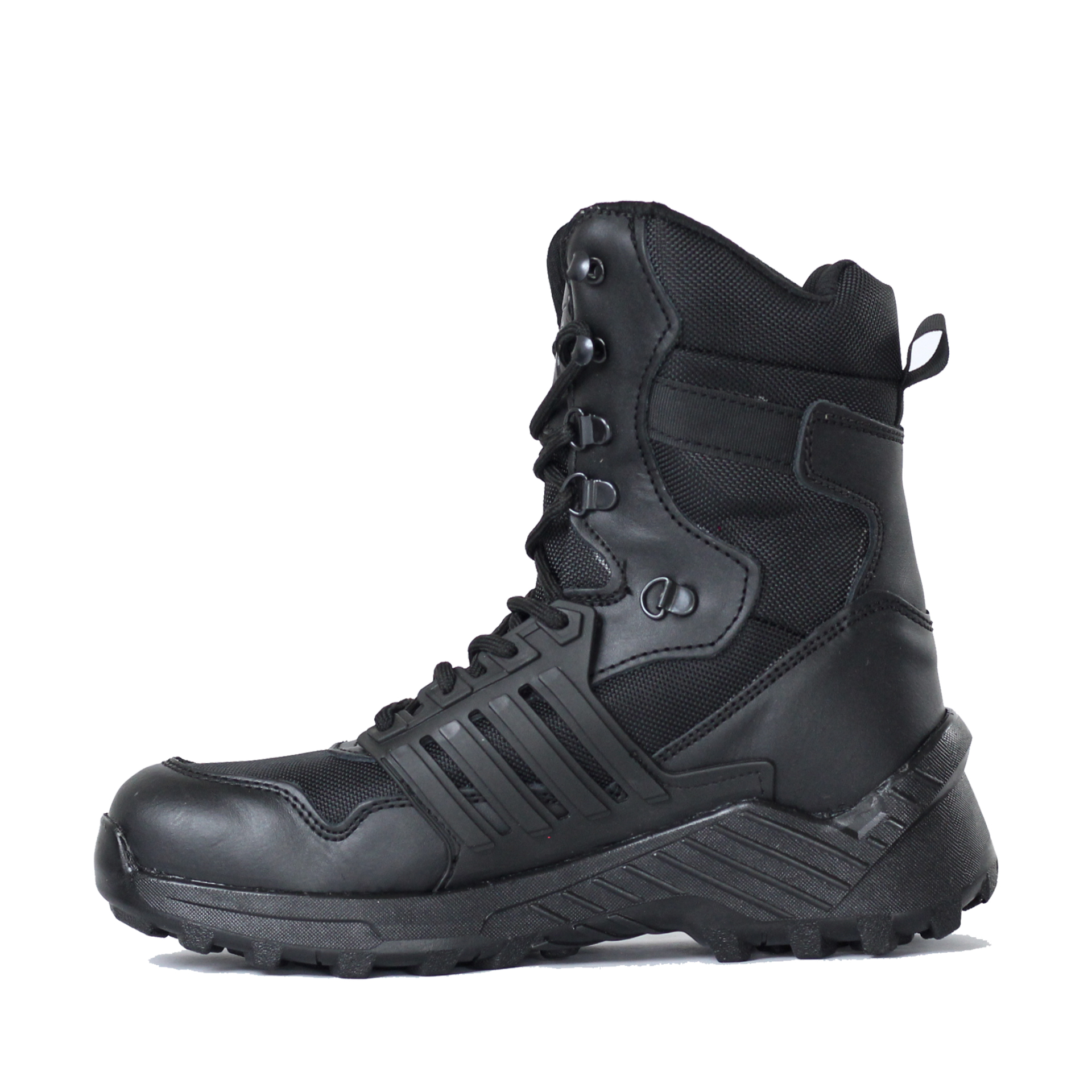 Modelo Under – Confeccionada con piel negra de acabado napa, profesional y duradera. Incorpora un casco de acero para ofrecer una protección robusta contra impactos y compresiones. La bota también cuenta con una malla antimicótica, transpirable y fresca, que mantiene los pies cómodos y saludables durante su uso prolongado.Además, su sistema de ajuste con pasacintas de TPU garantiza un ajuste preciso y seguro, mejorando la estabilidad y el confort. Esta bota es ideal para operaciones tácticas y entornos exigentes, proporcionando seguridad y rendimiento en cada paso.