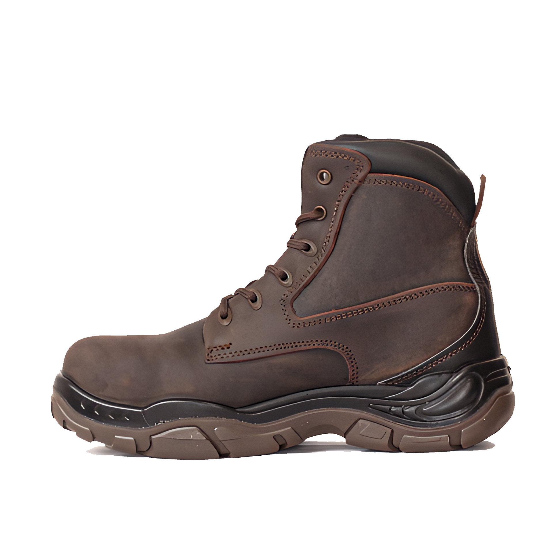 Modelo Wiz – Calzado de seguridad de alta calidad, fabricado con tecnología alemana. Con una altura aproximada de 17 cm, este modelo está confeccionado con cuero de ganado vacuno liso, garantizando durabilidad y resistencia. La suela está inyectada con poliuretano (PU) y un patín de hule formulado con tetrapolímeros, lo que proporciona una combinación óptima de amortiguación, comodidad y estabilidad al caminar.